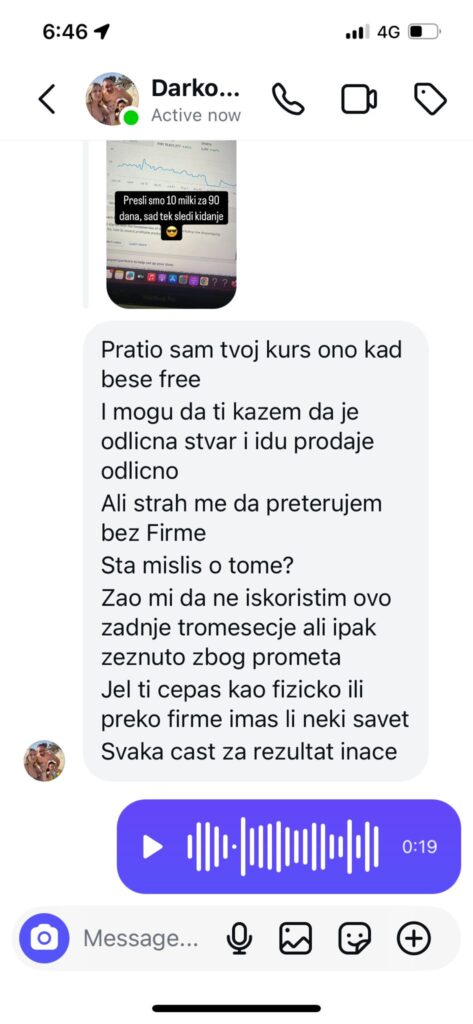 Otkrivam tada za dropshipping, moji odlaze u inostranstvo da rade, a otac mi ostavlja Fiat Punta, 1.9 JTD, beli. Prodajem ga i sve pare gruvam u Facebook ads! Znam ja kako to treba, imam proizvod, sad reklama i lova samo upada na paypal! Zašto bih ja platio nekoga da me bilo šta nauči? Pa ovo je prelako!